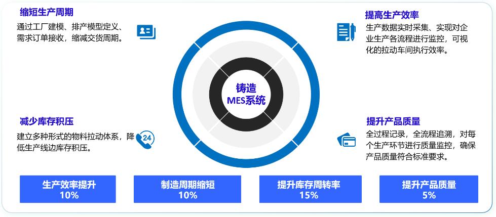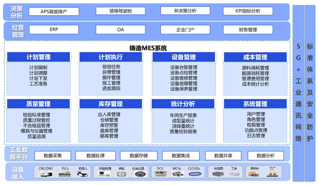 麥斯時代MES針對鑄造行業(yè)生產(chǎn)特點,提供計劃管理、計劃執(zhí)行管理、成本管理、質量管理、庫存管理、設備管理、統(tǒng)計分析等功能模塊。系統(tǒng)基于B/S架構可實現(xiàn)快速部署,通過標準接口可與企業(yè)內(nèi)部ERP、OA等系統(tǒng)快速集成,為用戶提供高效、透明的制造環(huán)境,幫助企業(yè)科學掌握生產(chǎn)動態(tài)、提升產(chǎn)品質量、降低生產(chǎn)成本、提高交貨速度。