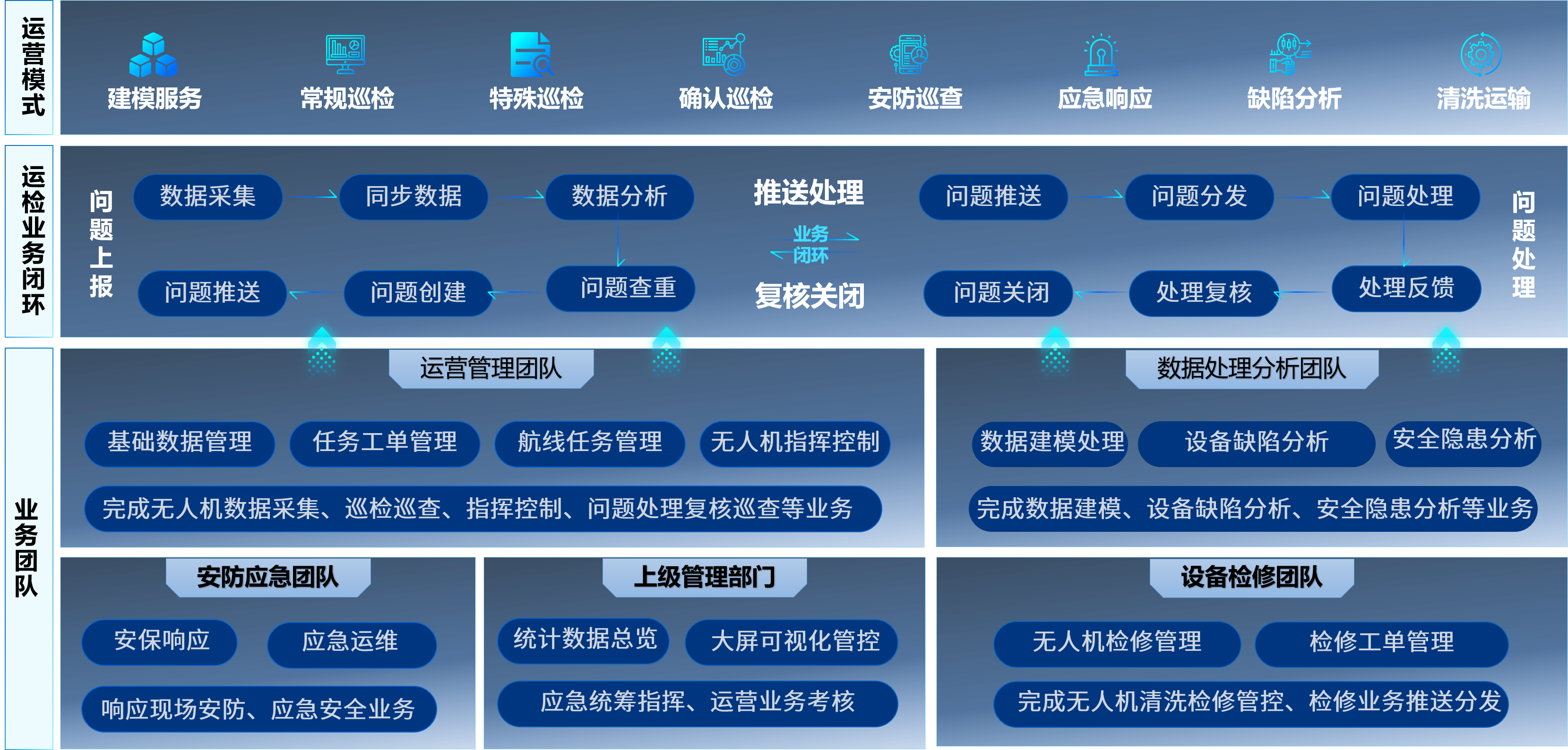 通過融合AI識(shí)別算法的無人機(jī),能夠?qū)崟r(shí)掌控設(shè)備狀態(tài)、環(huán)境信息等。同時(shí),通過工業(yè)互聯(lián)網(wǎng)平臺(tái)進(jìn)行數(shù)據(jù)分析、可視化展現(xiàn)。依托平臺(tái)側(cè)數(shù)據(jù)的傳輸、分析,支持與廠站級(jí)管控平臺(tái)系統(tǒng)接入,共享數(shù)據(jù),助力整廠運(yùn)營(yíng)一張圖。