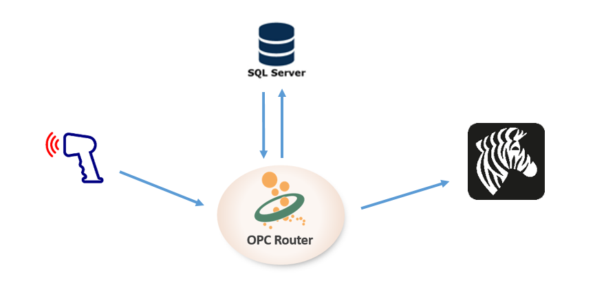 通過使用OPC Router軟件,生產(chǎn)開始時(shí),從SQL Server系統(tǒng)中獲取生產(chǎn)作業(yè)計(jì)劃數(shù)據(jù)信息,包含生產(chǎn)時(shí)間、生產(chǎn)批次、批次信息、產(chǎn)線、生產(chǎn)部件類型,物料號(hào)等等,生產(chǎn)過程中數(shù)據(jù)信息能及時(shí)回傳到SQL Server系統(tǒng)中,包括成品掃碼時(shí)間,條形編碼等信息。